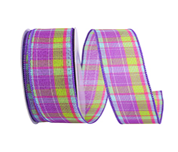 Bright Purple Plaid Ribbon 50 Yards.