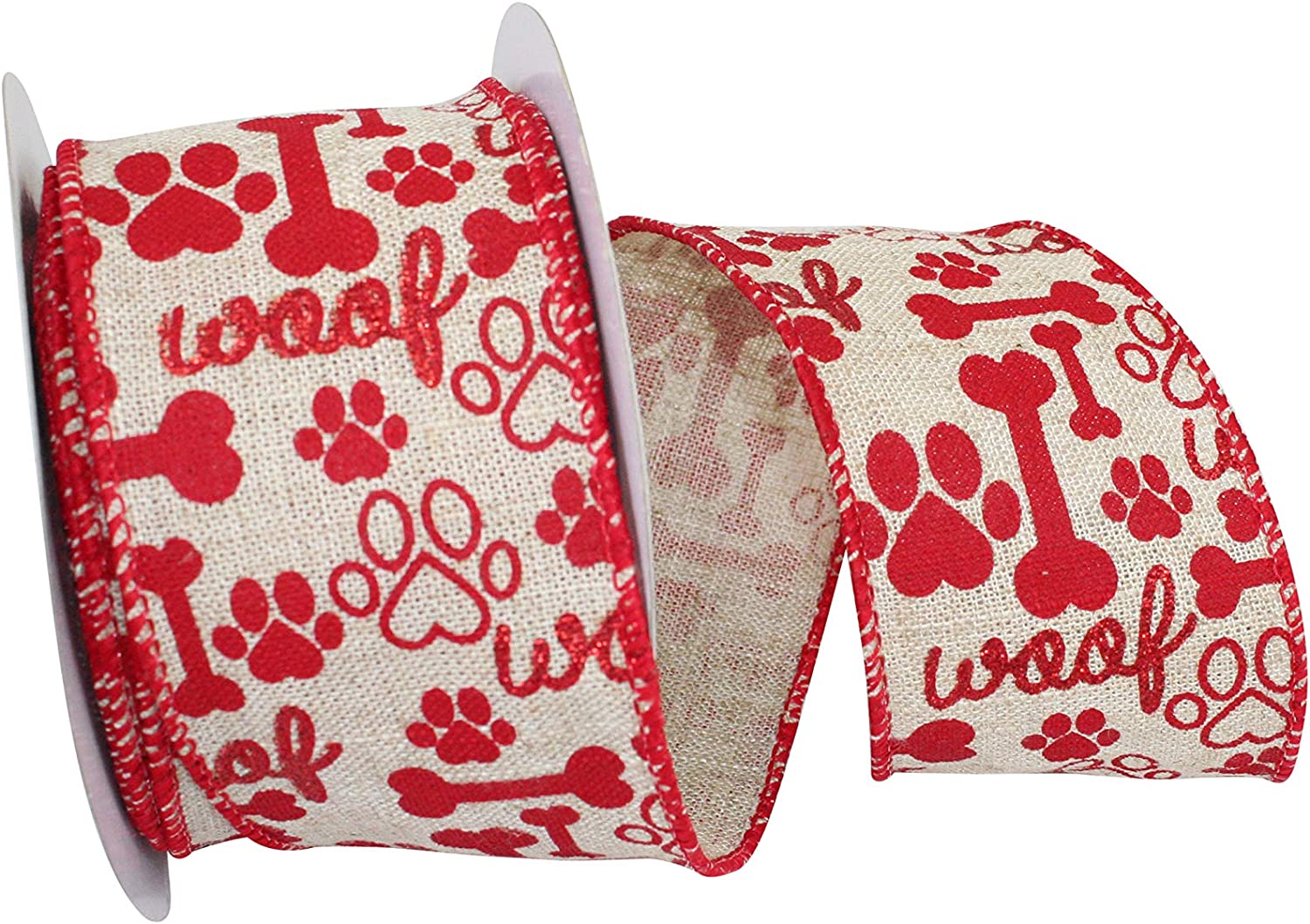 2 1/2" Dog Bone and Paws Hopsack Ribbon 10 Yards
