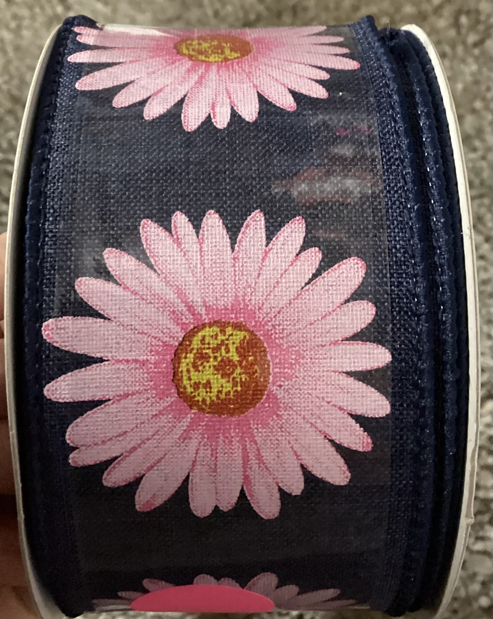2 1/2' Gerbera Daisy Linen Wired Edge Ribbon 20 Yards