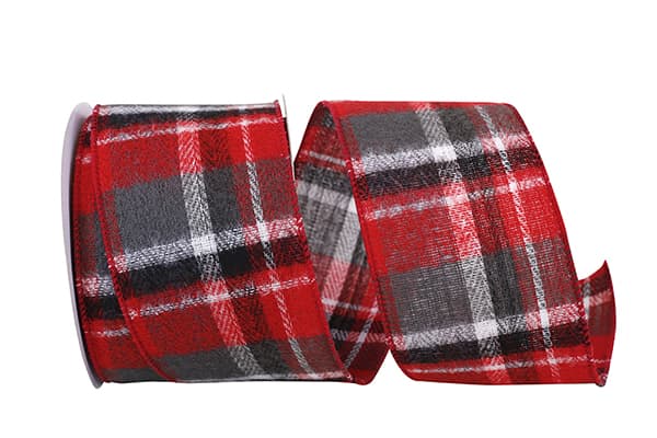 2 1/2" Gray Flannel Plaid Wired Edge Ribbon 10 Yards