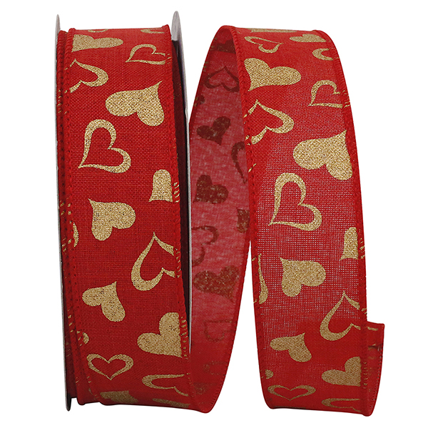 1 1/2" Heart Linen Wired Edge Ribbon 25 Yards