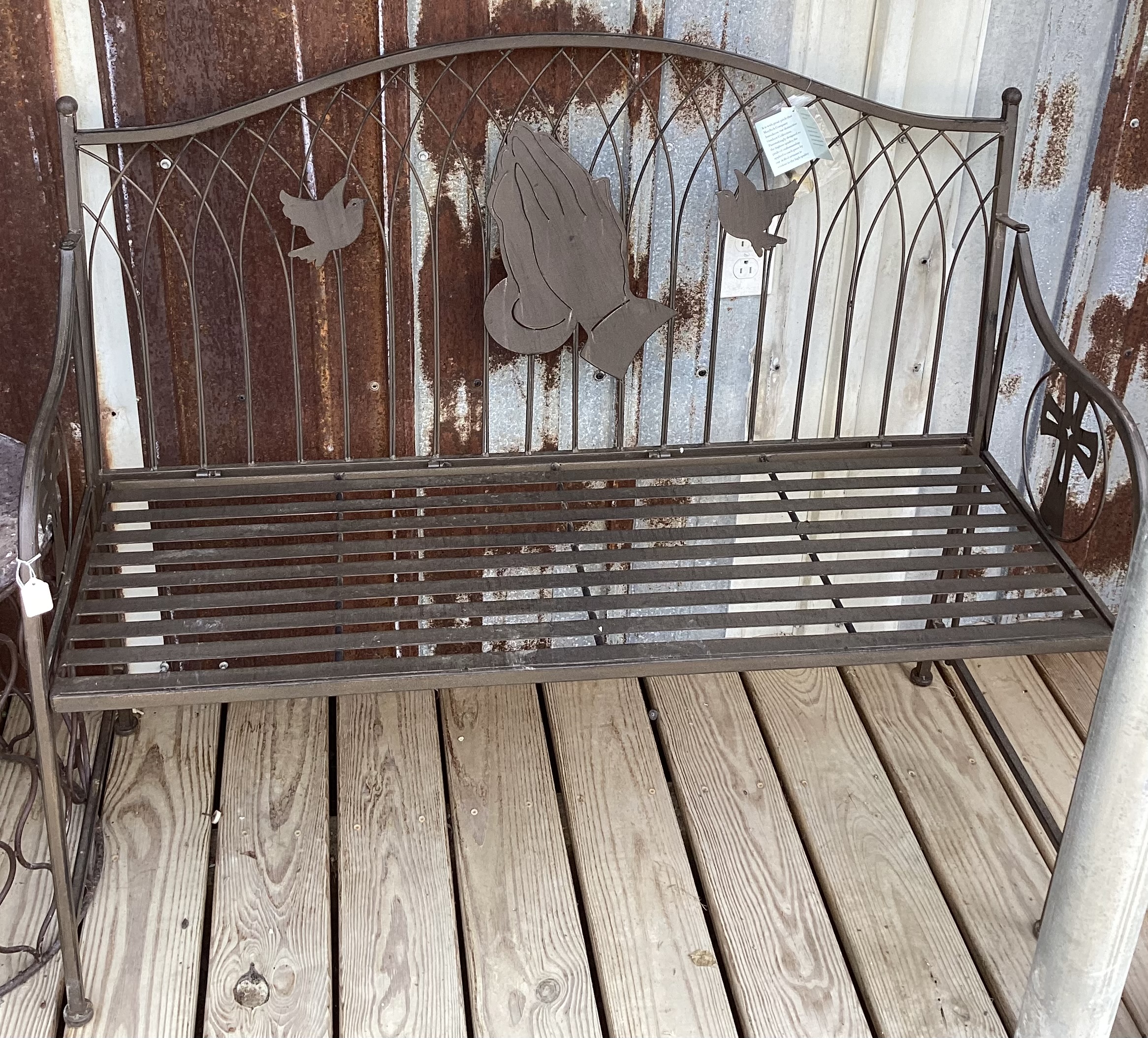 Metal Brown Outdoor Bench Praying Hands