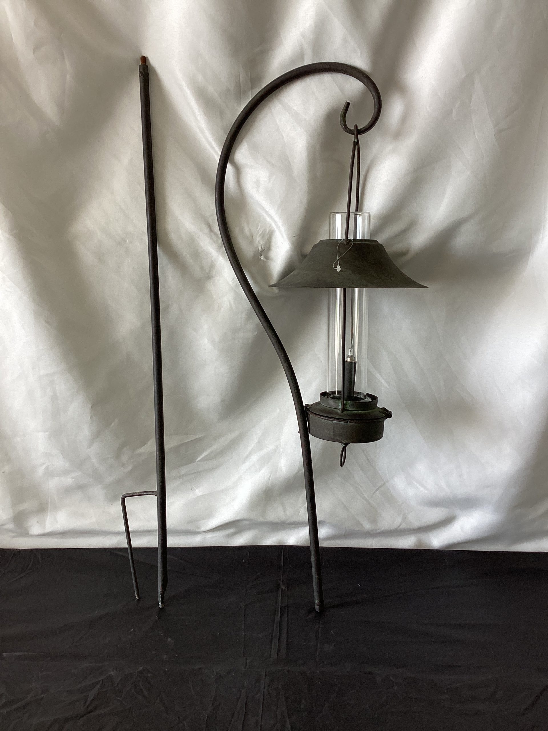 Metal Shepherds Hook with Lighted Antique Lantern