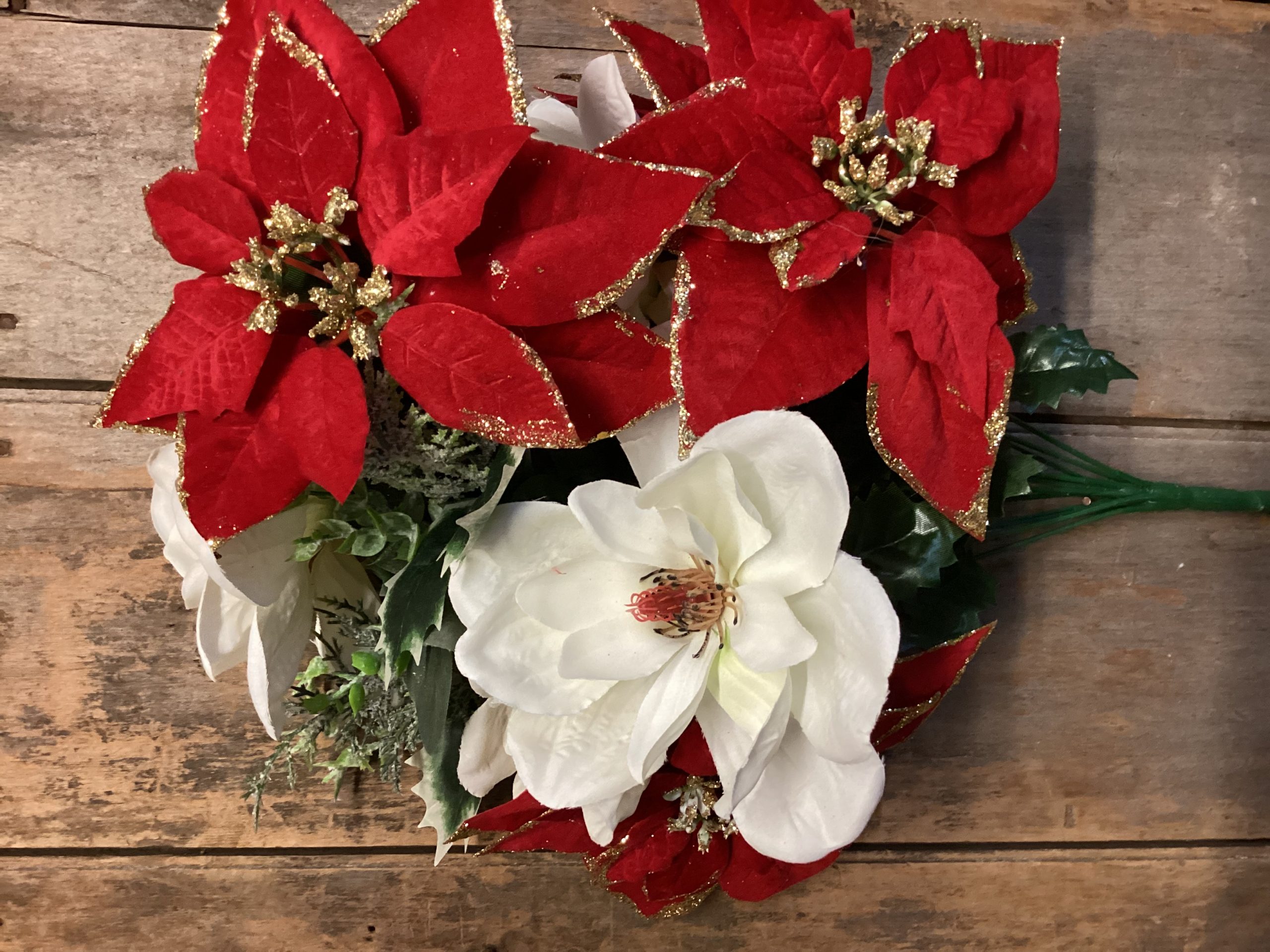 Mixed Glitter Poinsettia and Magnolia Bush