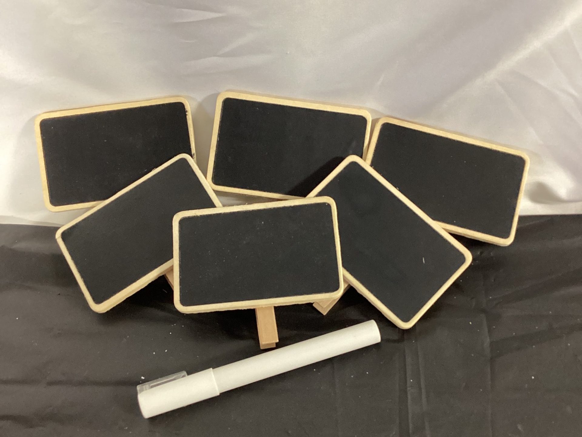 Pack of 6 clothespin chalkboards with chalk marker