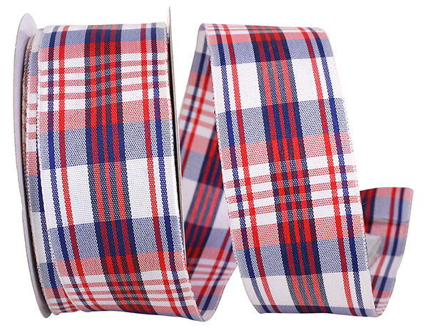 1 1/2" Patriotic Plaid Woven Wired Edge Ribbon 20 Yards