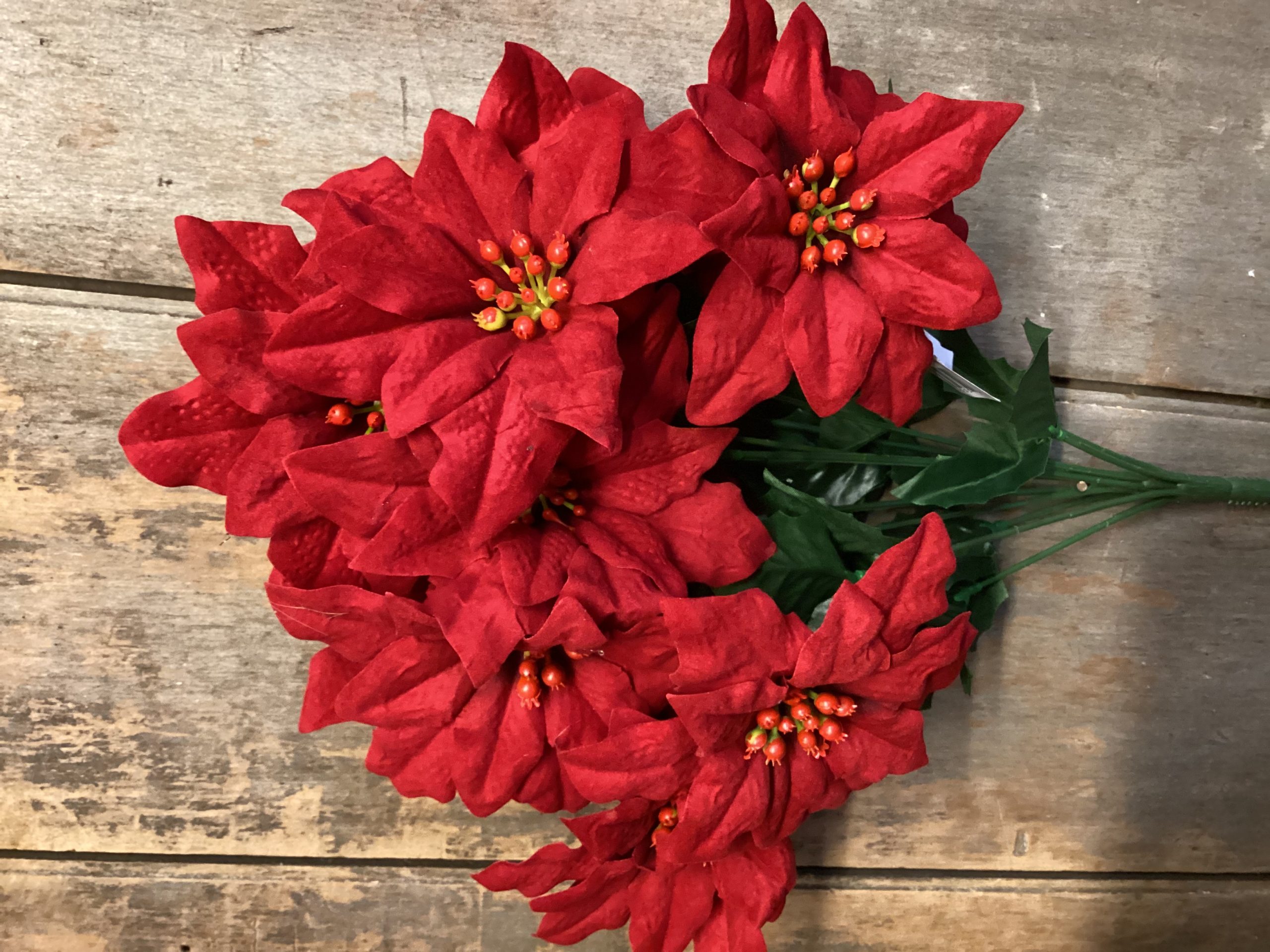 Water Resistant Velvet Finish Poinsettia Bush 12 Stems