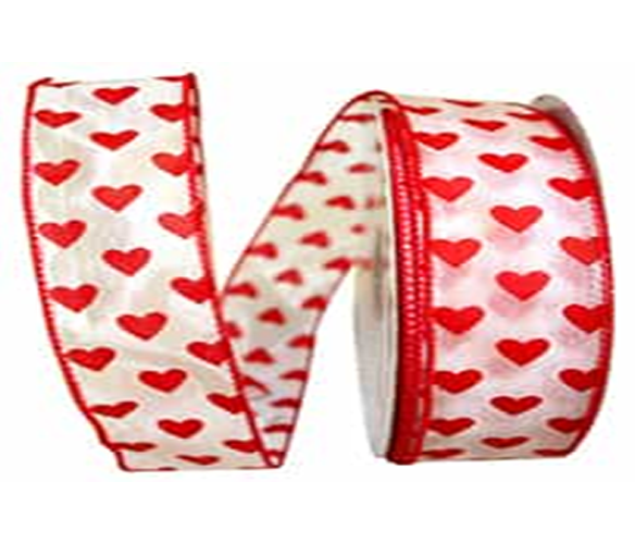 1 1/2" Sheer White with Red Hearts