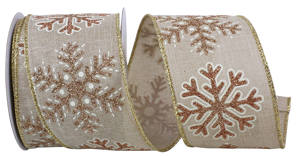 21/2" Snowflake Glitter Outline Muslin Wired Edge Ribbon 20 Yards