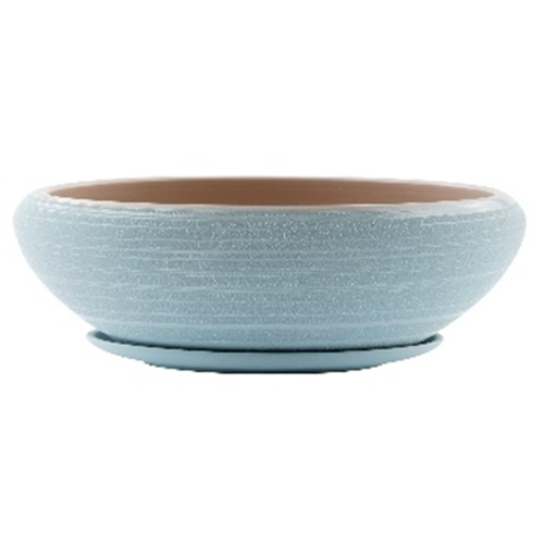 XLarge Blue Striped Pot with Saucer Ceramic